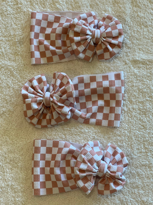 beige checkered bow