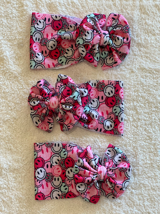hot pink cheetah happy faces bow