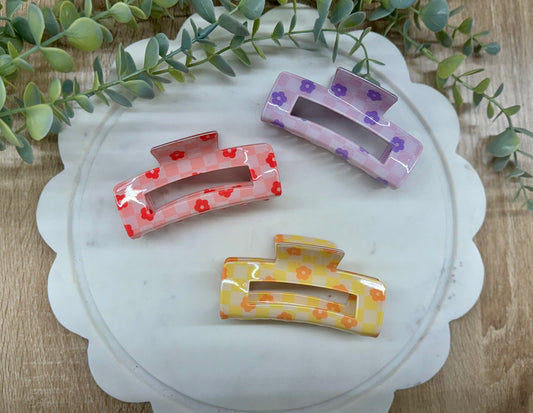 Regular price $12.00Regular priceUnit price / perSale price $12.00checkered flower claw clip