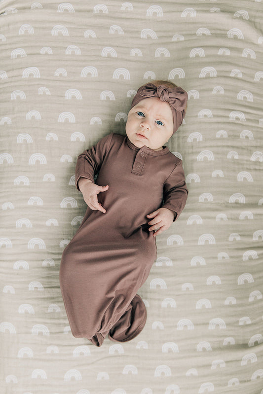 Oatmeal Organic Cotton Ribbed Knot Gown