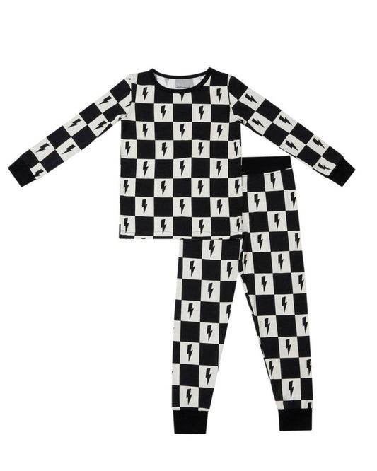 bamboo zip pajamas | white & black lightning bolt