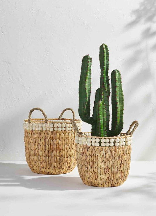 white double bead basket set
