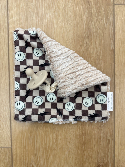 happy face + lightning bolt pacifier blanket