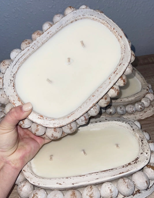 small circle wood dough bowl candles