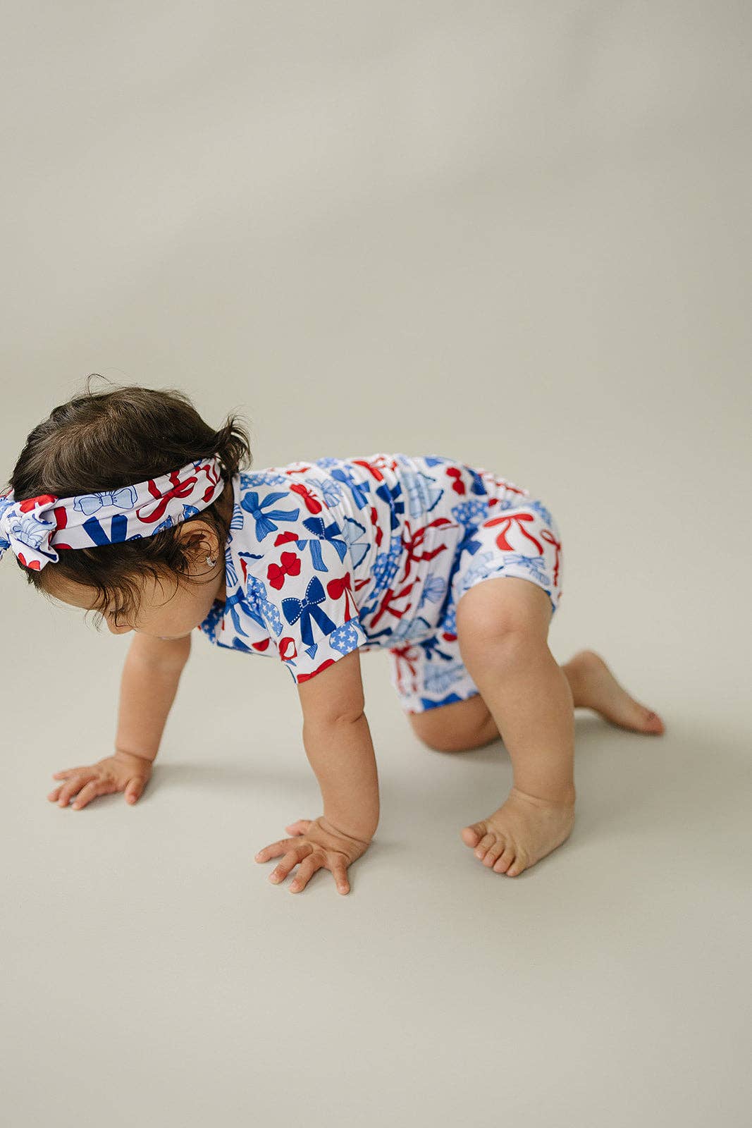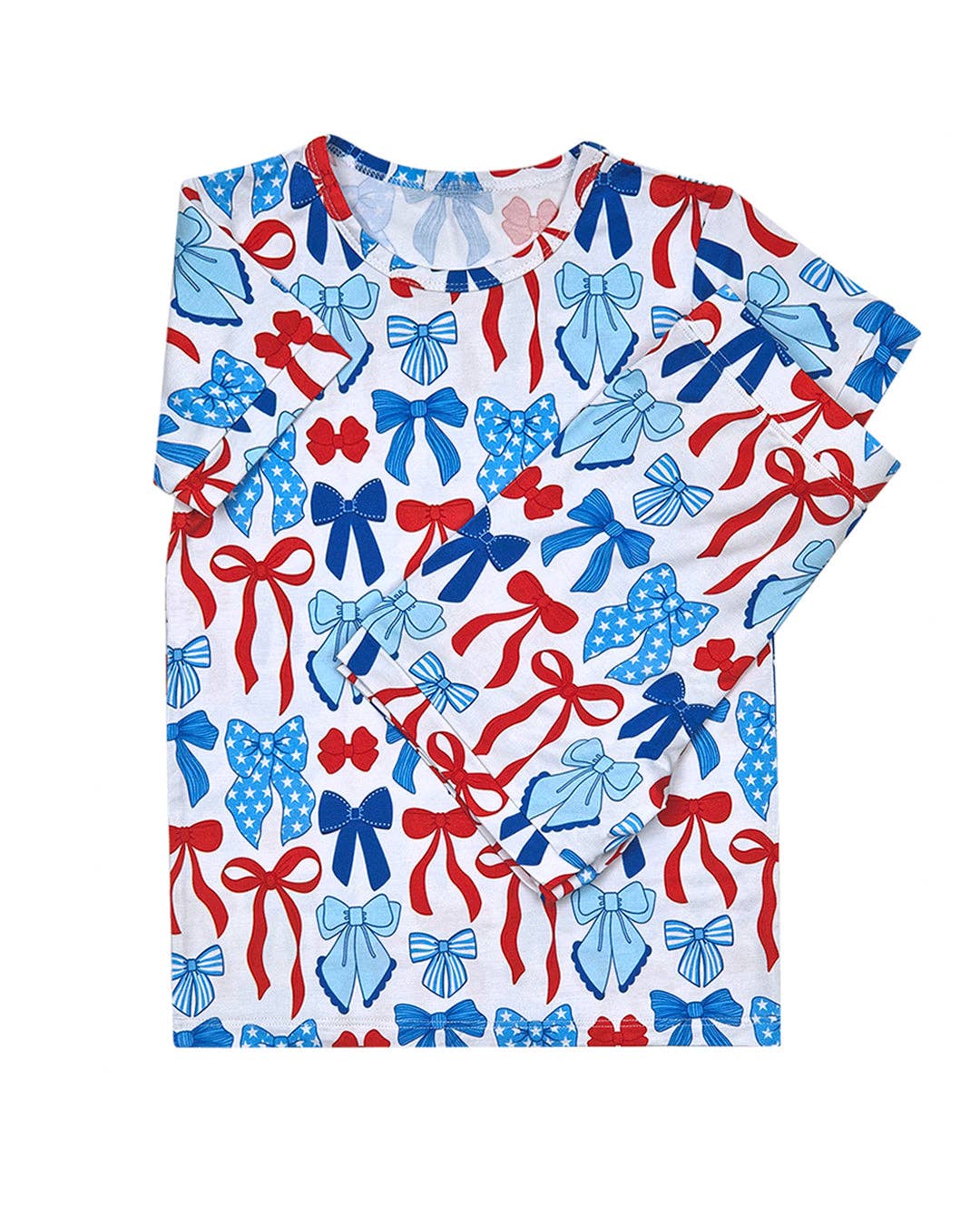 Featuring a sweet and festive print of red, white, and blue bows, this two-piece set is perfect for warm-weather celebrations and everyday play. Crafted from our signature buttery-soft bamboo fabric, it’s breathable, stretchy, and gentle on sensitive skin—keeping your little one cool and comfy from morning to night.