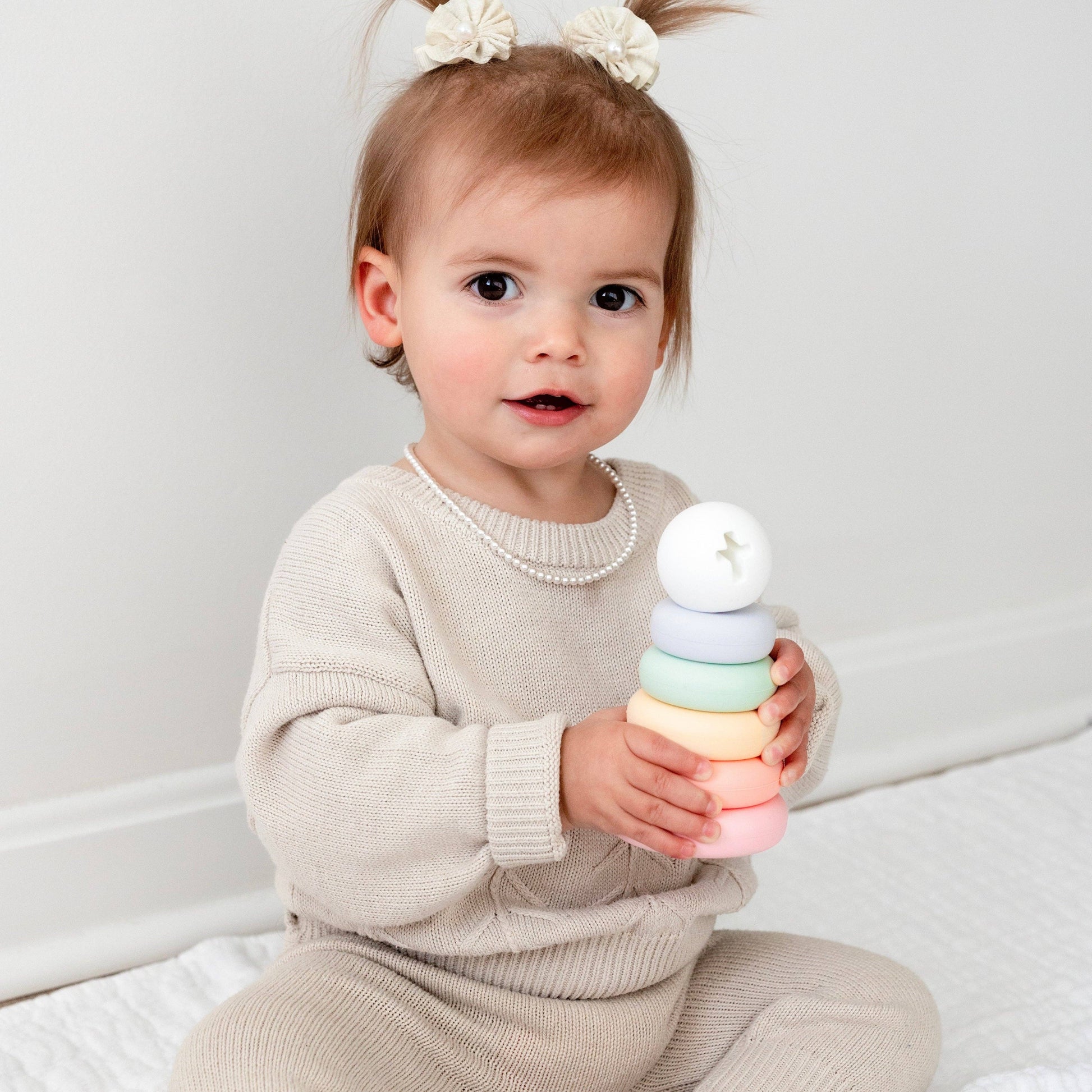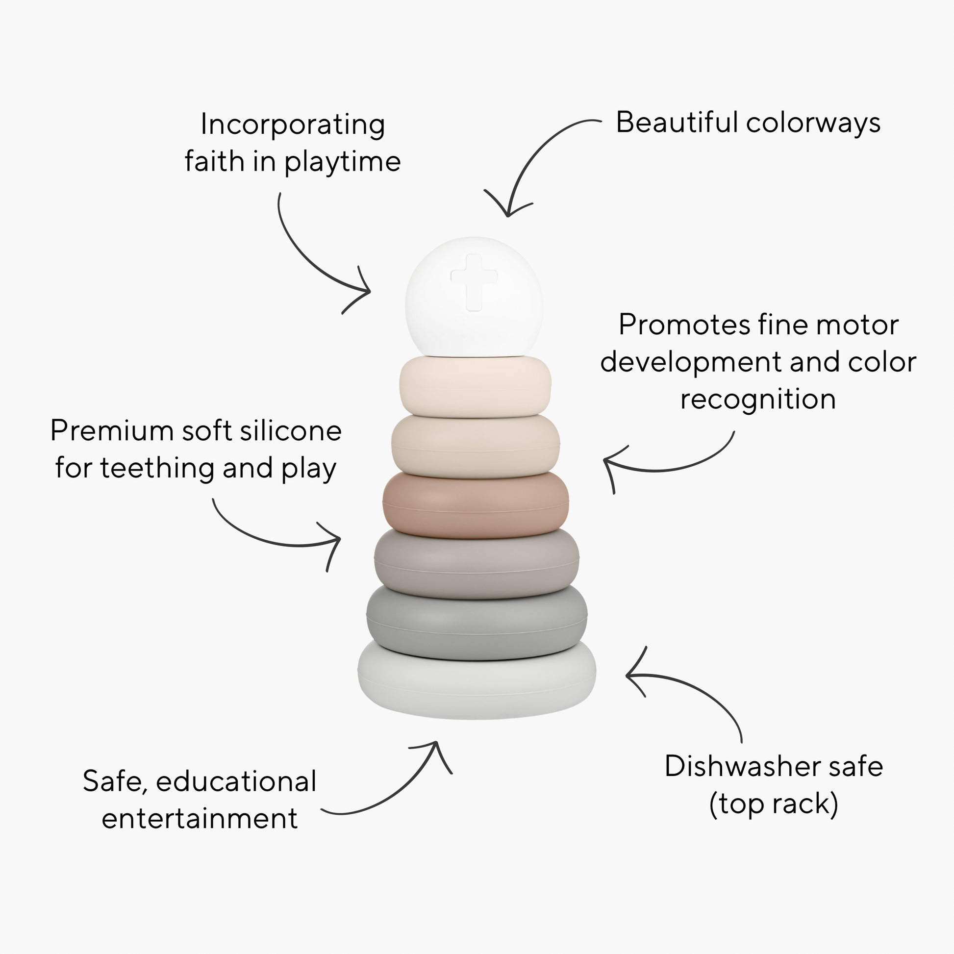 Introducing the Silicone Cross Stacker Toy (0M+), expertly crafted from premium, soft silicone, ensuring a gentle touch for your baby’s delicate hands. Designed to support early childhood development such as fine motor skills, hand-eye coordination, and color recognition. This beautiful toy features a cross shape, serving as a loving reminder of Jesus and incorporating faith into playtime. Not only does it provide safe, educational entertainment, but it also adds a charming touch to any baby’s room decor. The perfect blend of faith and fun, our Cross Stacker is ideal for baby showers, dedications, birthdays, and more!