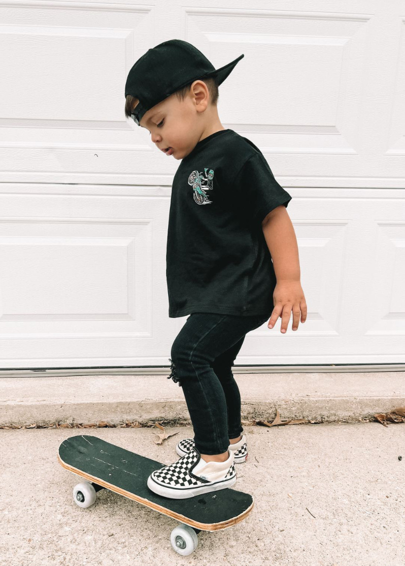 The Fast is Fun t-shirt is made for the little rippers and risk-takers chasing adventure. Inspired by the SoCal, where the sand meets the dirt and all the little trouble makers out there. Sustainably made from the signature Little Trouble blend (perfect parts organic cotton + bamboo viscose), this lightweight and buttery soft t-shirt is made to be worn and loved many washes later.