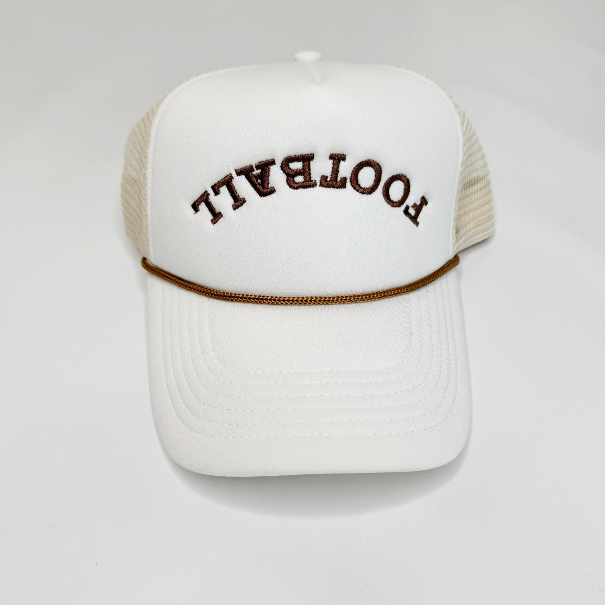 Poppy & Pine Ivory Trucker hat embroidered with brown thread