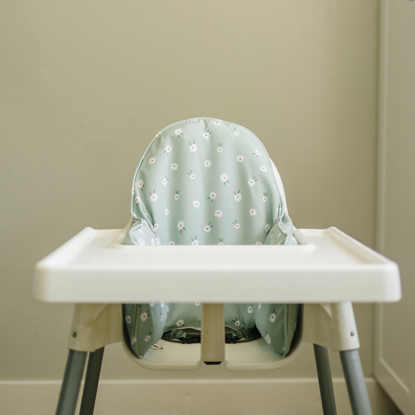 Tiny white daisies printed on pale green! Wipeable cushion cover for the IKEA Antilop Highchair