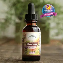 Liver Love promotes liver health by supporting detox and liver function. Five simple and organic herbs in a base of water and either organic cane alcohol (alcohol formula) or organic vegetable glycerin (alcohol-free formula) create an herbal tincture brimming with liver-supporting properties. The liver is a critical, hard-working organ, and this herbal tincture provides 100% natural support.
