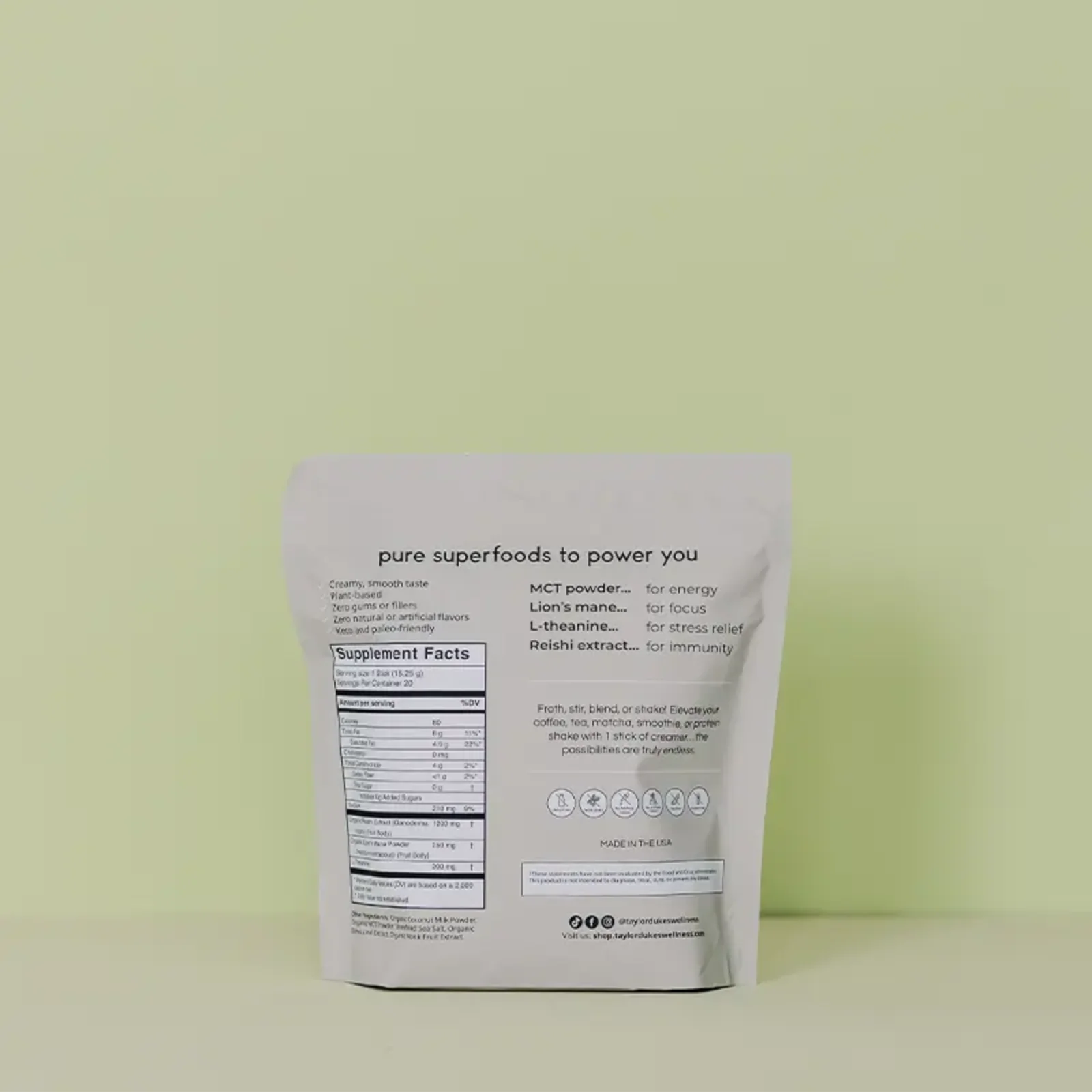 Organic Superfood Creamer has a delicious, creamy taste and pairs great with TDW Pure Coffee. It’s time to level up your morning cup!