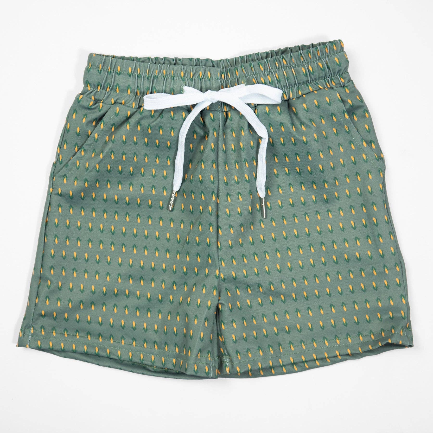 Get ready for some corny fun in the sun with our Retro Corn Baby Swim Trunk! Featuring a playful retro corn design, this swim trunk is perfect for your little one's beach adventures. The elastic band and drawstring ensure a comfortable fit, while the pockets add a practical touch. Go green and make a splash with our quirky swim trunk!