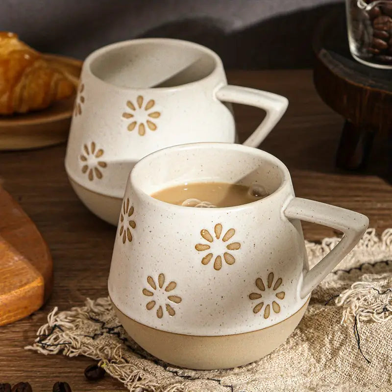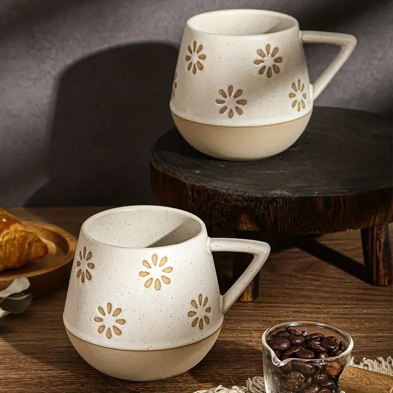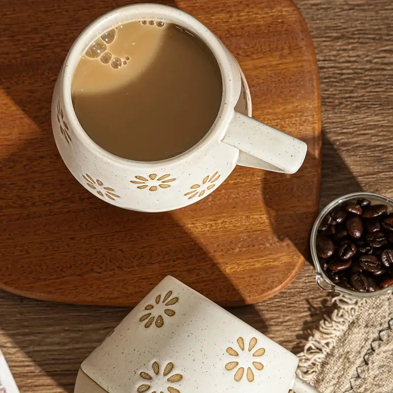This retro flower mug features a unique chunky pottery design with its gorgeous floral pattern and appealing color contrast. A capacity of 12oz makes it perfect for your morning coffee, afternoon tea, or a refreshing glass of milk. Made of durable ceramic, it is microwave and dishwasher safe, making it easy to use and clean. A great gift idea as well, it is perfect for birthdays, holidays, or any special occasion.