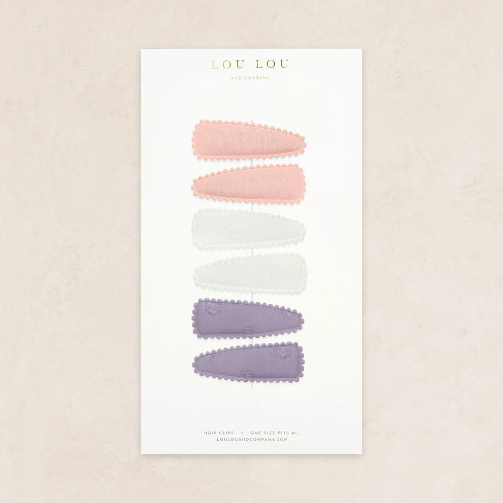 Each clip features a soft, fabric-covered design with delicate scalloped edges for a charming, vintage-inspired touch.