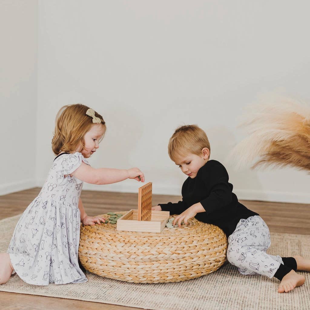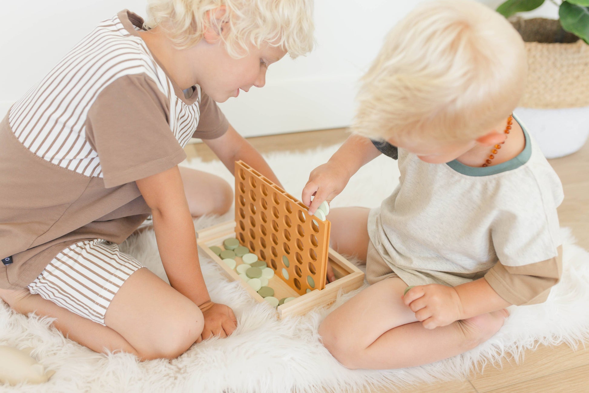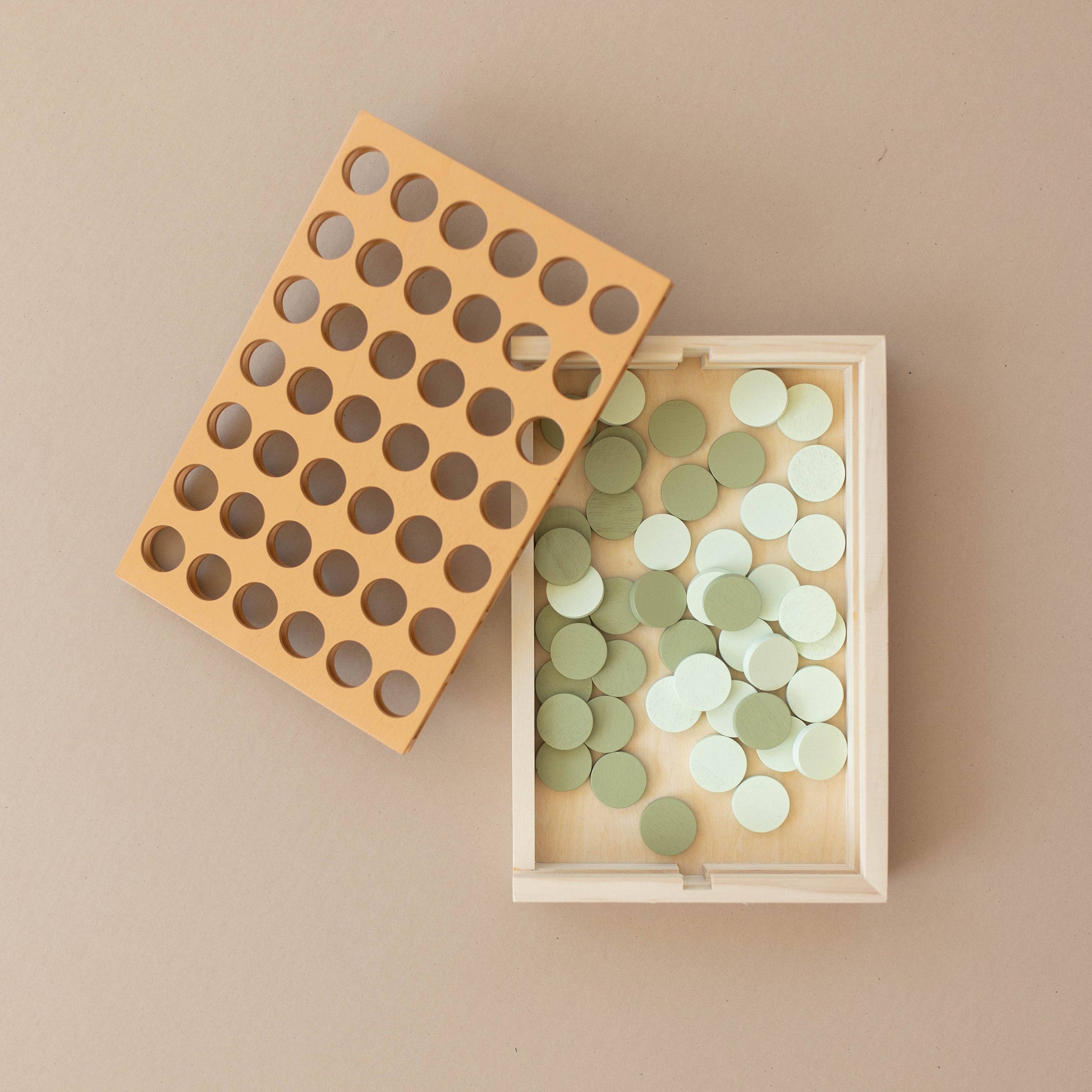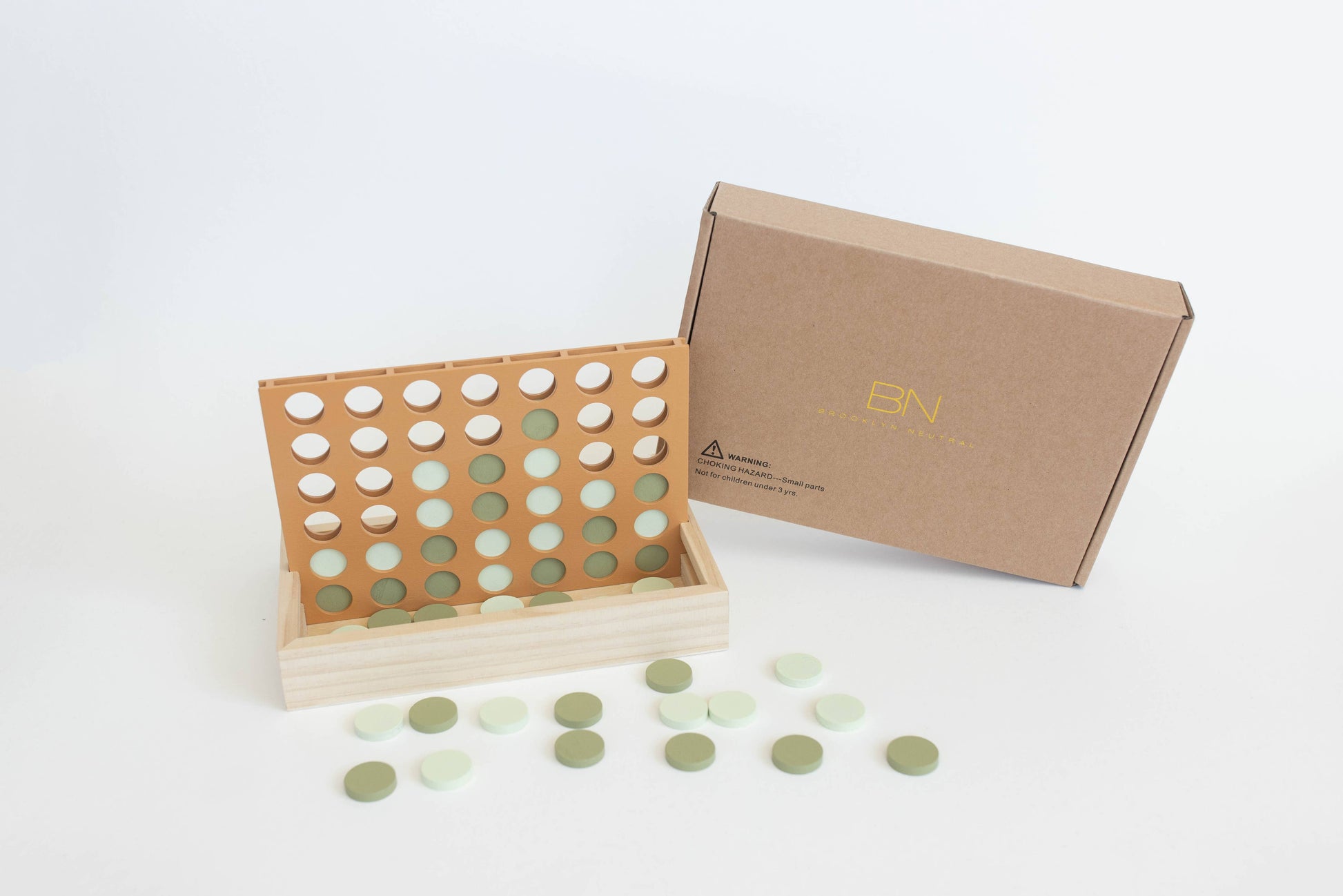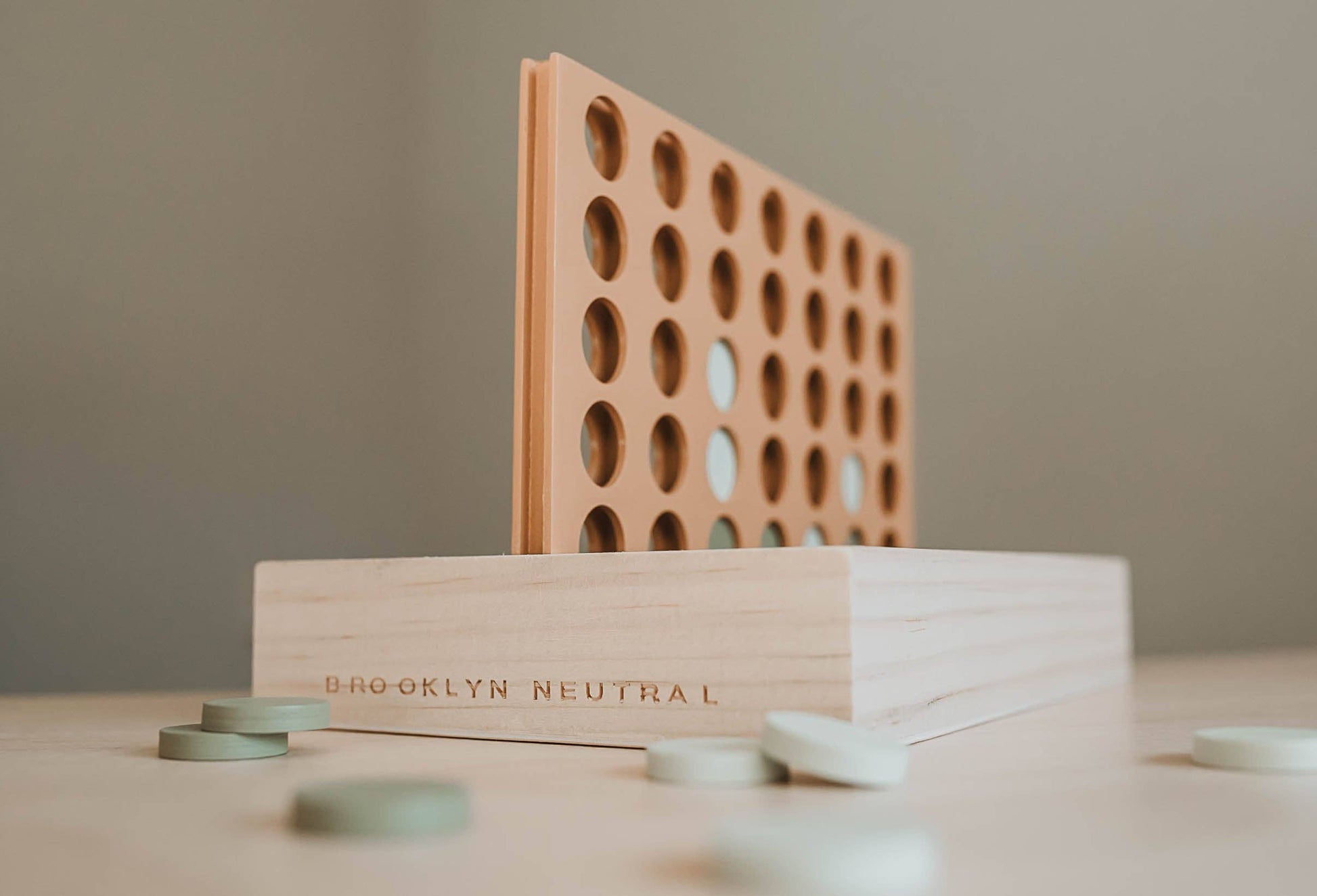 A classic game with a modern touch! This wooden four in a row game is great for any outing, travel or a cozy day at home! It's compact and the perfect size to double as coffee table decor. Adults as well as kids will love this addition to any living or guest room and the neutral colors allow the game to blend into many different decor styles. Linen bag included to store all game pieces.